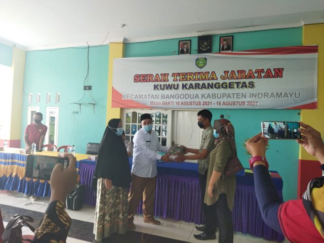 Indramayu-PI. Pelantikan serentak 170 Kepala Desa terpilih telah dilaksanakan Senin 16/8/2021 kemarin oleh Bupati Indramayu secara virtual,kini dibeberapa desa sedang dilakukan serah terima jabatan termasuk di desa karanggetas,kecamatan Bangodua,kabupaten Indramayu Jabar, jumat 20/8/2021.