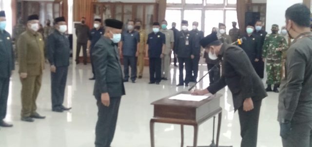 Sumedang-(PI).Pelantikan dan pengambilan sumpah janji pejabat pimpinan tinggi Pratama,dilingkungan pemerintah daerah kabupaten Sumedang,tahun 2021.Bupati Sumedang,H.Dony Ahmad Munir melatik dan rotasi 7 pejabat pimpinan tinggi Pratama,yang dilaksanakan di gedung Negara Sumedang, Senin 15/11.