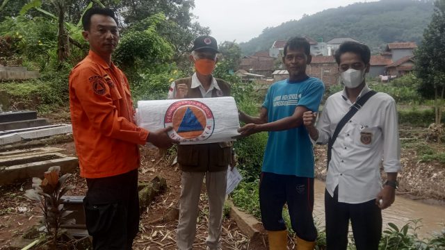 Sumedang-(PI). Badan penanggulangan bencana daerah (BPBD ) Kab. Sumedang,menyerahkan bantuan,berupa terpal dan karung,yang diserahkan langsung kepada pengelola makam Cijambe sebagai antisipasi pencegahan longsor yang terjadi di TPU Lingkungan Cijambe Rt.01/07,Kelurahan Situ, Kec.Sumedang Utara. Kab.Sumedang.Rabu 25/5/2022.