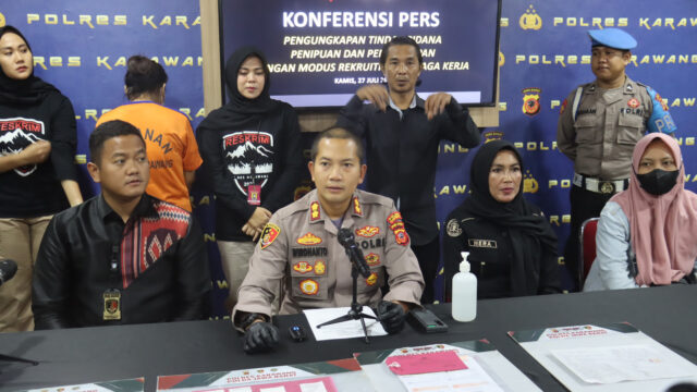Diungkapkan Kapolres Karawang AKBP Wirdhanto Hadicaksono pengungkapan tindak pidana penipuan dan atau penggelapan dengan modus tenaga kerja berdasarkan LP/B/1037/VII/2023/SPKT/POLRES KARAWANG/POLDA JAWA BARAT, tanggal 09 Juli 2023, dengan kejadian di 10 TKP dari korban yang berbeda di Wilayah Kab. Karawang.