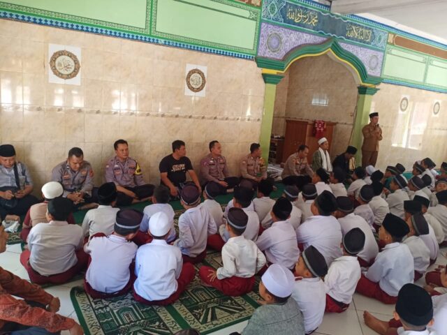 Rombongan Polsek Kotabaru diterima langsung oleh Kyai Asep Wahab sebagai tokoh ulama sekaligus pimpinan Ponpes Hikmatul Muhajirin bersama para santri dan para guru.