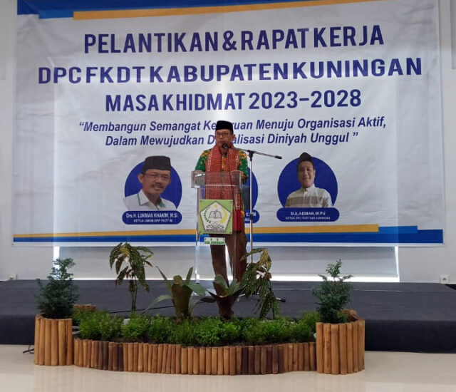 KUNINGAN (pelitainvestigasi.com) – Peran Madrasah Diniyah (Madin) dalam kehidupan berbangsa tidak bisa diabaikan. Kehadiran Madin bagi bangsa Indonesia memberikan makna kedamaian dan ketenteraman. Hal tersebut karena pembelajaran di MDT mencerminkan Islam yang moderat atau Islam rahmatan lil alamin. Demikian ditegaskan oleh Ketua Umum DPP FKDT H Lukman Hakim, M.Si saat memberikan sambutan pada acara Pelantikan DPC FKDT Kab Kuningan.
