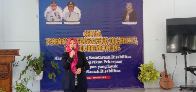 Karawang-(PI).Bertempat di aula disnakertrans Kabupaten Karawang menggelar gebyar penempatan tenaga kerja distabilitas melalui job fair online. Minggu (01/10/2023)