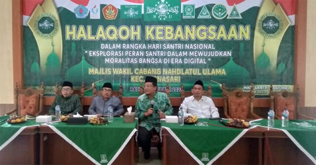 Semoga tidak berimbas di kecamatan lain dan di Wanasari dipastikan tidak ada Madin yang bubar. Oleh karena itu dalam rangka memperkuat eksistensi Madin di Brebes dibutuhkan Peraturan Daerah tentang Madrasah Diniyah. Demikian disampaikan H. Musyaffa, Lc saat menjadi narasumber dalam kegiatan Halaqoh Kebangsaan peringatan Hari Santri yang diselenggarakan oleh MWC NU Wanasari Brebes.