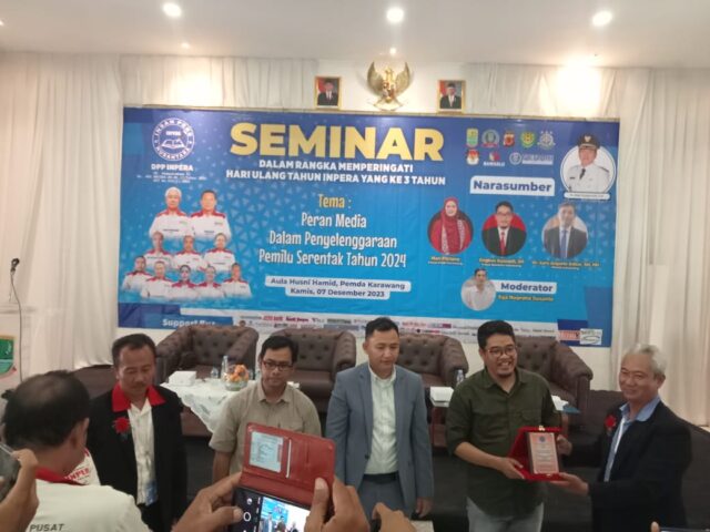 Karawang : Pelita Investigasi,Sambut Hari Ulang Tahunnya yang ke-3, Dewan Pimpinan Pusat, Insan Pers Nusantara (DPP INPERA) menggelar Seminar dengan tema: ‘Peran Media dalam Penyelenggaraan Pemilu Serentak Tahun 2024’ yang di di Aula Husni Hamid komplek Pemda Karawang, Kamis (7/12/2023).