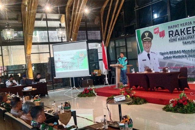Rakerkab KONI itu, mengusung tema “Spirit Bedas Mendukung Jabar Hattrick Juara”. Dibuka secara langsung oleh Kadispora Kawaludin yang mewakili Bupati Bandung. Acara tersebut berjalan dengan baik dan lancar, di Ciwidey Valley Resort, Desa Alamendah Kecamatan Rancabali Kabupaten Bandung, Kamis 14 Desember 2023.