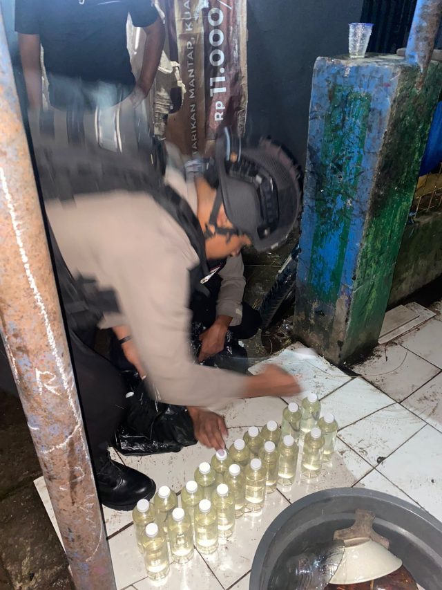 “Berdasrkan informasi itu, kemudian Kami melakukan pengerebegan di lokasi itu, ternyata ditemukan barang bukti 24 botol minuman beralkohol Jenie Ciu yang dikemas dalam botol air mineral ukuran 600 ML,” jelasnya