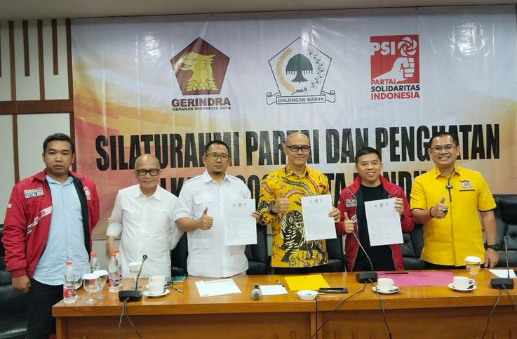 BANDUNG (pelitainvestigasi.com) – Partai Solidaritas Indonesia (PSI), Partai Golkar dan Partai Gerindra resmi berkoalisi dalam Pilkada Kota Bandung 2024 mendatang. Jika dijumlahkan, koalisi ini memiliki 18 kursi keterwakilan di DPRD Kota Bandung dan syarat untuk memajukan calon wali kota dan calon wakil wali kota sudah terpenuhi.
