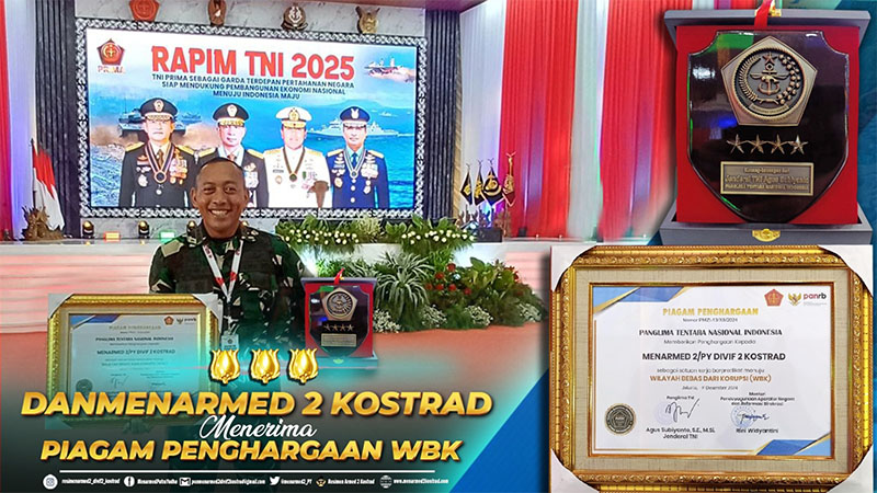 Penghargaan WBK yang diraih Menarmed 2 Kostrad merupakan bukti nyata komitmen satuan dalam menciptakan lingkungan yang bersih dari korupsi serta menjalankan tata kelola organisasi yang transparan dan akuntabel. Dengan pencapaian ini, Menarmed 2 Kostrad bertekad untuk terus mempertahankan standar kinerja yang tinggi serta memberikan kontribusi positif bagi institusi dan masyarakat. (Red)