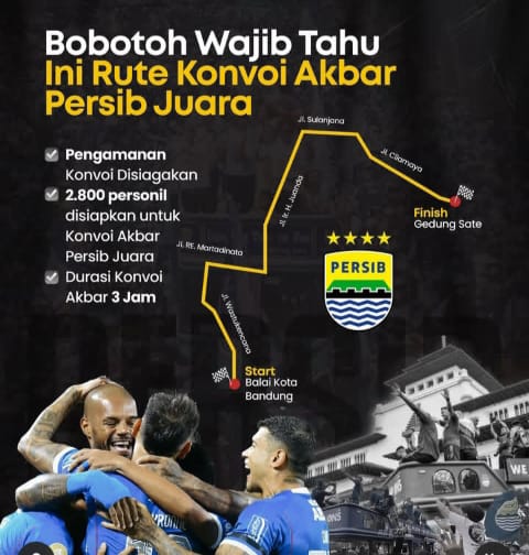 Konvoi akbar akan dilakukan sehari setelah Persib Bandung menjalani laga terakhir melawan Persis Solo sekaligus menerima piala dan medali di Stadion Gelora Bandung Lautan Api (GBLA), Sabtu (24/5/2025).