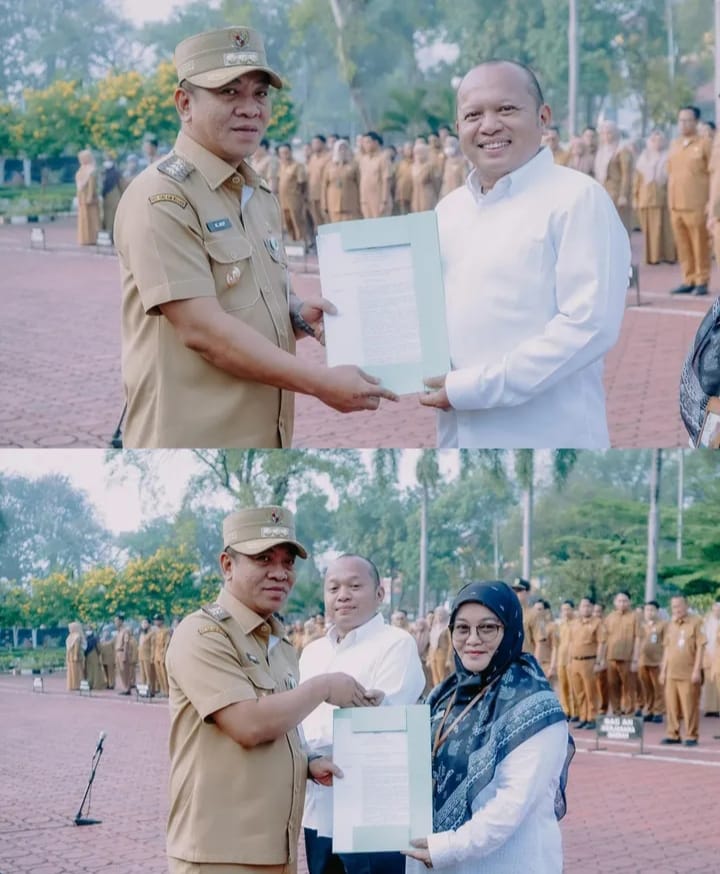 Kab. Karawang – (PI).Bupati Karawang H. Aep Syaepuloh memimpin apel pagi di Plaza Pemda Karawang, Senin (28/7/25). Kegiatan juga dipadukan dengan penandatanganan pakta integritas dan penyerahan Surat Keputusan (SK) pengurus Dewan Pengawas (Dewas) PD Petrogas Persada Karawang.