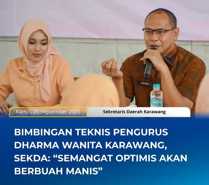 Karawang-(PI).Sekretaris Daerah Karawang H. Asep Aang Rahmatullah, S.STP., M.P menghadiri kegiatan Bimbingan Teknis (Bimtek) Pengembangan Sumber Daya Manusia bagi para pengurus Dharma Wanita Persatuan (DWP) Kabupaten Karawang. Pada Jumat 25/9/2025