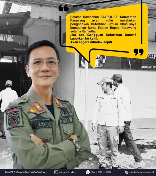 Karawang-(PI). Satpol PP Kabupaten Karawang melaksanakan patroli pengawasan dalam rangka sosialisasi dan penegakan Surat Edaran Bupati terkait himbauan selama bulan suci Ramadhan.