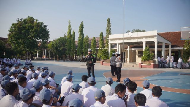 Polres Karawang – (PI). Kanit Kamsel Satlantas Polres Karawang, Ipda Angga Mas Bani, beserta personel melaksanakan kegiatan Police Goes to School di SMAN 4 Karawang, Kabupaten Karawang, Senin (27/4/2026).