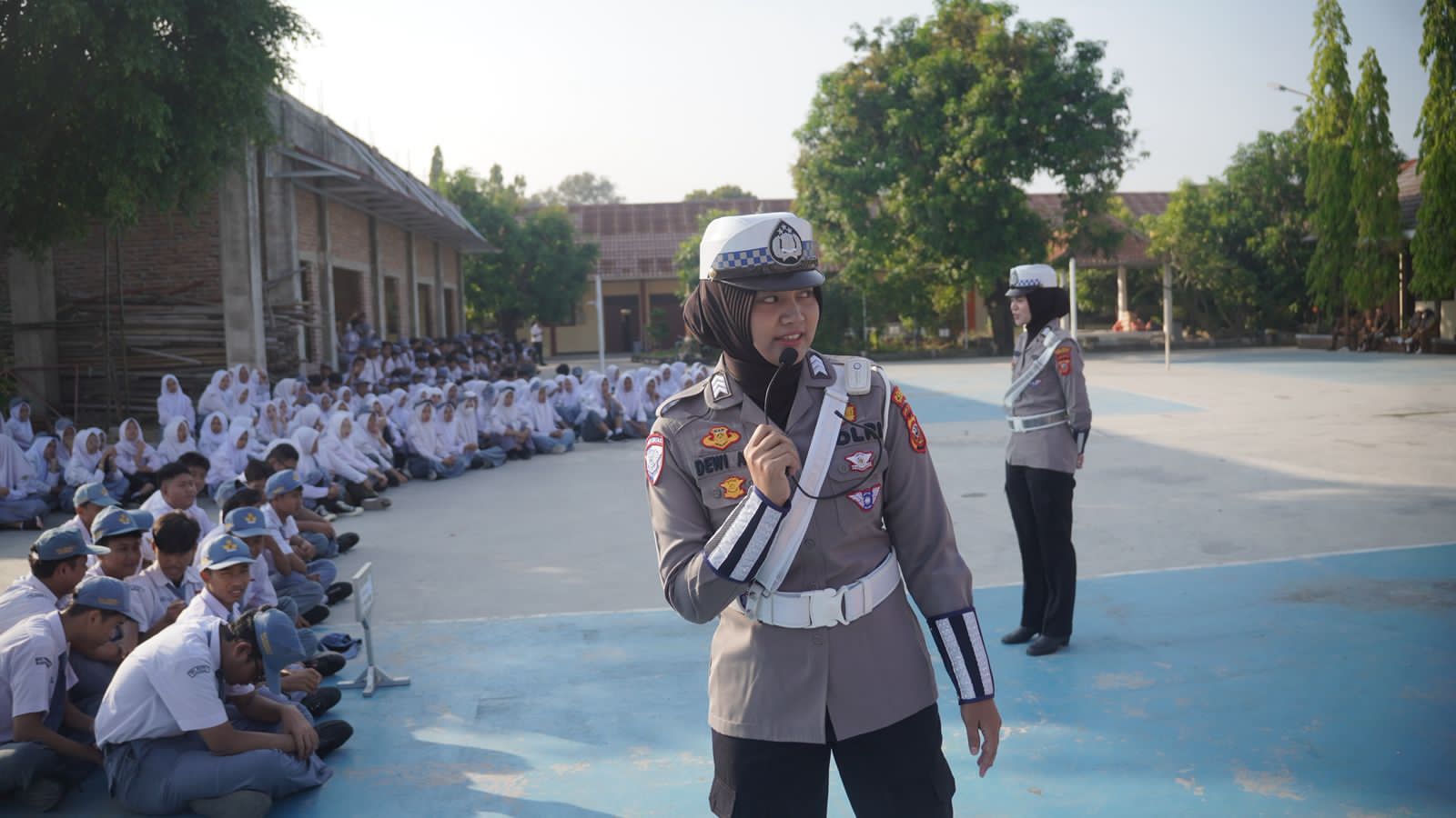 Satlantas Polres Karawang Sajikan Keseruan saat Kegiatan Police Goes to School di SMAN 4 Karawang