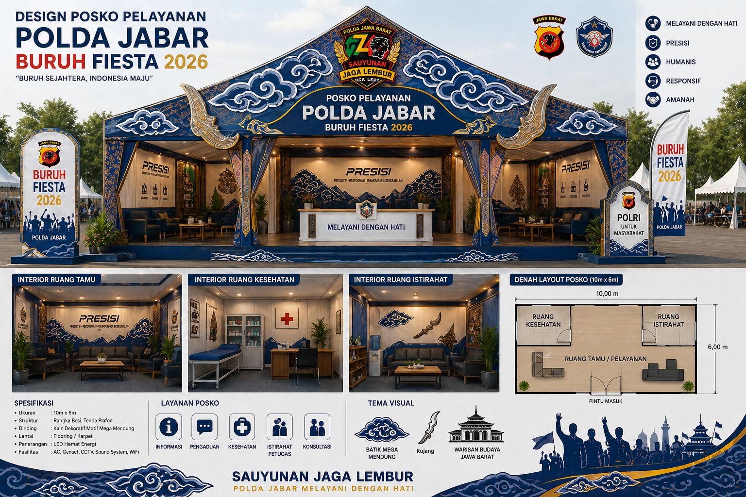 Polda jabar – (PI). Polda Jawa Barat membuka posko pelayanan dalam kegiatan Buruh Fiesta 2026 yang digelar di Jakarta. Kehadiran posko tersebut merupakan bentuk komitmen Polri dalam memberikan pelayanan maksimal sekaligus menjamin keamanan dan ketertiban selama berlangsungnya perayaan Hari Buruh (May Day).