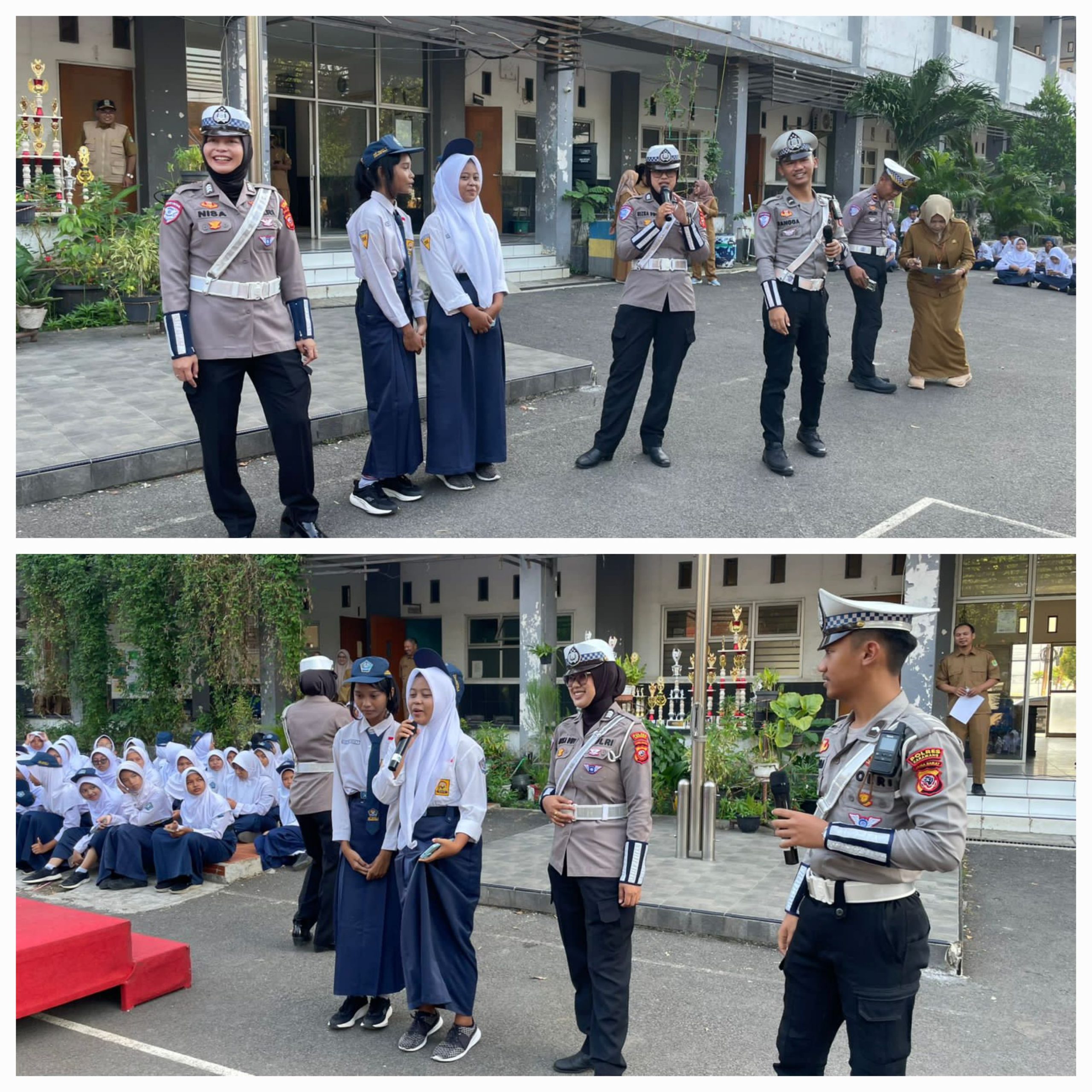 Polres Karawang – (PI). Kanit Kamsel Satlantas Polres Karawang, Ipda Angga Mas Bani, beserta personel melaksanakan kegiatan Police Goes to School di SMPN 5 Karawang Barat, Kabupaten Karawang, Rabu (29/4/2026).