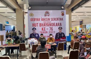 Sumedang-(PI). Dalam rangka menyambut HUT Bhayangkara ke 76 Polres Sumedang menggelar Gebyar Vaksin Serentak Presisi yang bertempat di Asia Plaza Sumedang. Jumat (17/06/2022).