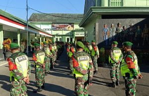 Bondowoso-PI. Prajurit Kodim 0822/Bondowoso saat melaksanakan apel pagi dan malam siaga on call, sekaligus antisipasi perayaan Haul di ,"Ponpes Salafiyah Syafi'iyah Ridwanullah Wringin "bertempat...