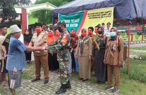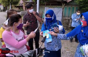 Pemdes Kertasari, Bidan Desa dan Babinsa Koramil Ligung “Bagi Bagi Masker”