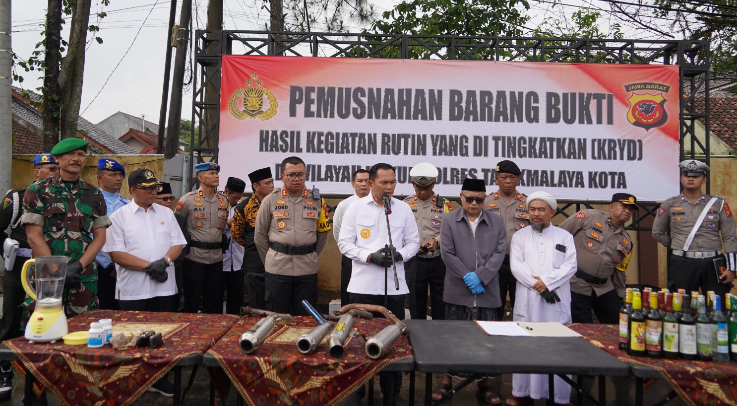 Polres Tasik Kota-(PI).Kegiatan pemusnahan Barang Bukti hasil dari hasil Operasi Pekat (Penyakit Masyarakat) Lodaya 2024 Polres Tasik Kota dilaksanakan setelah Apel Gelar Pasukan Ops...