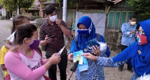 Pemdes Kertasari, Bidan Desa dan Babinsa Koramil Ligung “Bagi Bagi Masker”